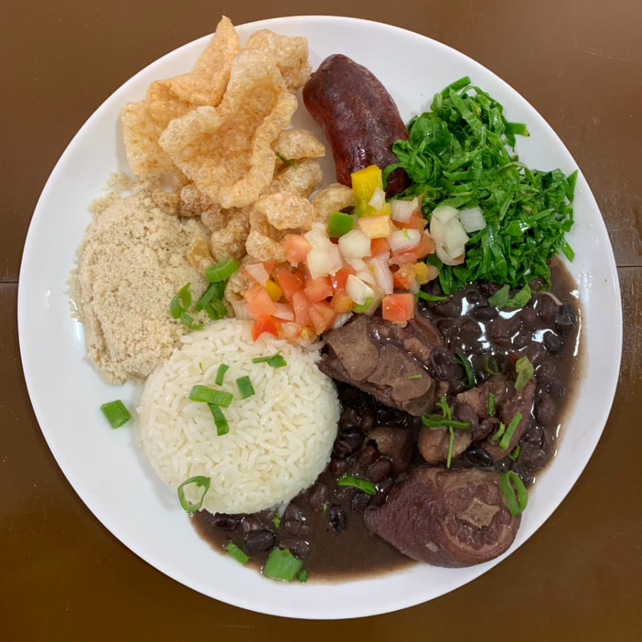 Carnes: • 2 Fatias de Costela Assada • Coxa e Sobrecoxa de Frango temperada • 2 Linguiças toscana • 1 Fatia de picanha grelhada Acompanhamentos: • Farofa tradicional • Vinagrete • Pão de alho (2 unidades) • Maionese Caseira