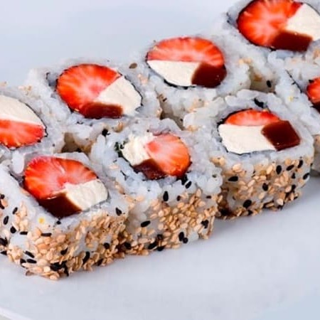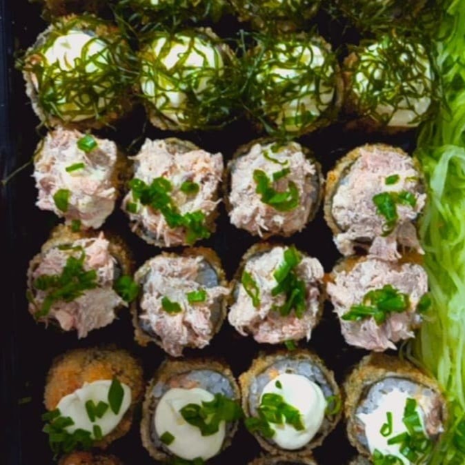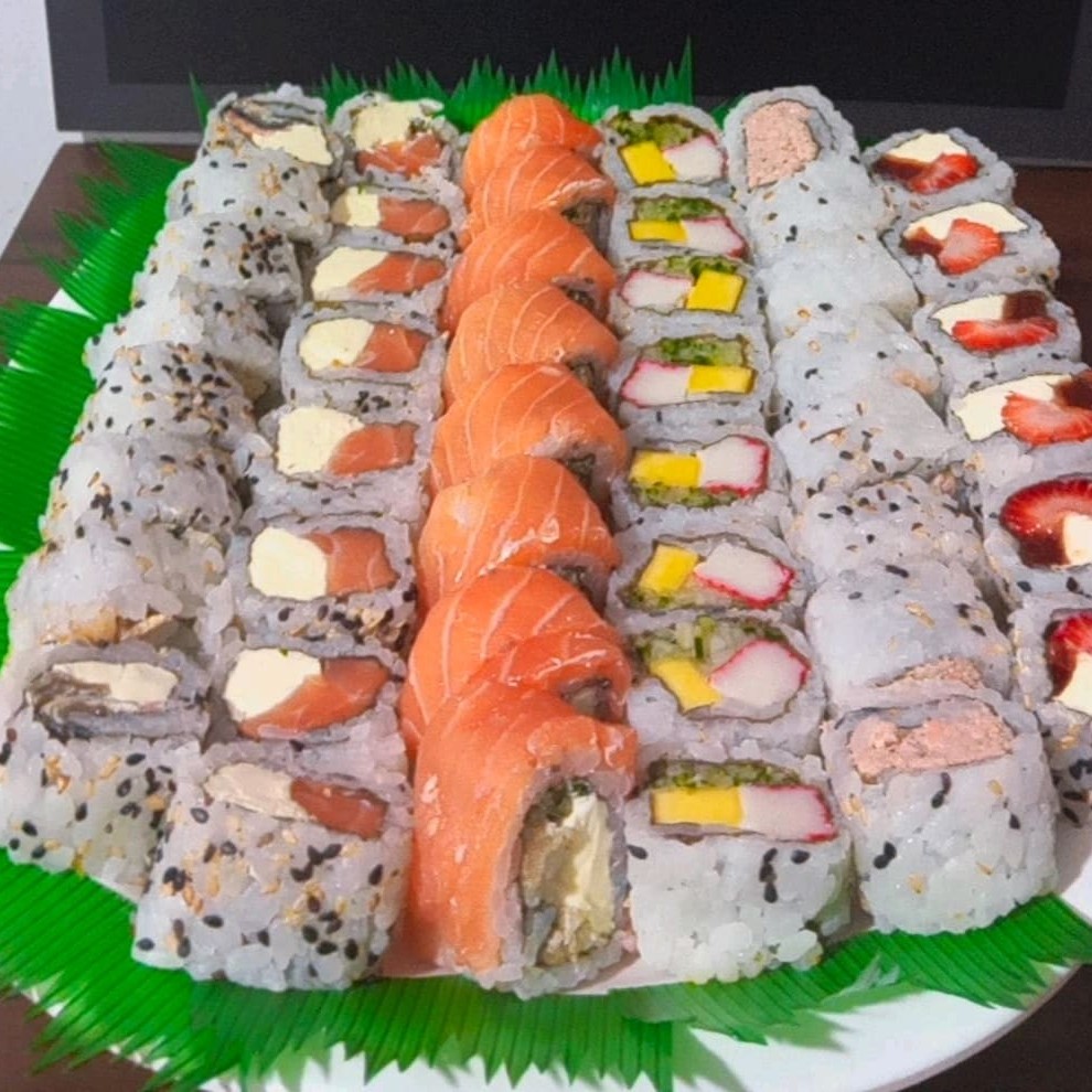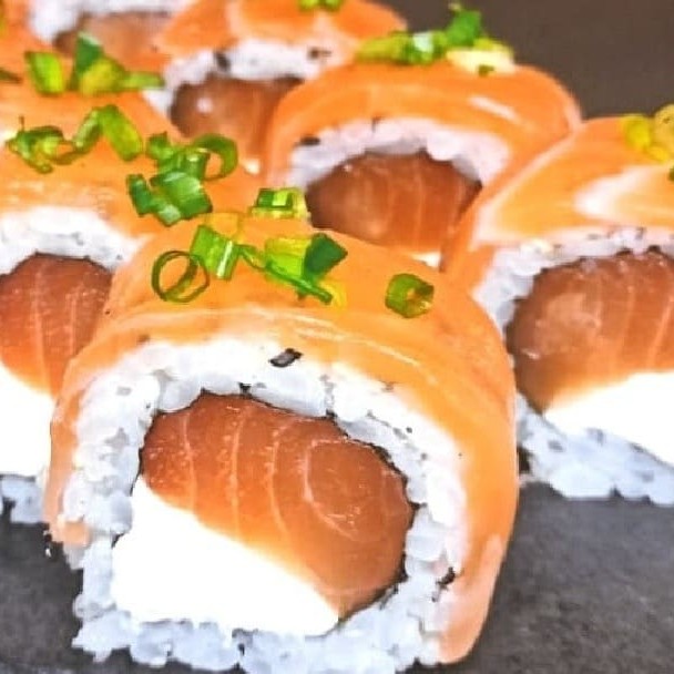 8 uramaki Filadélfia 8 uramaki Califórnia 8 uramaki Romeu e Julieta 8 uramaki ski 8 uramaki Niro 8 uramaki Ebi tem Uramaki eb tem vai pepino camarão e cream cheese e lâmina de salmão em cima