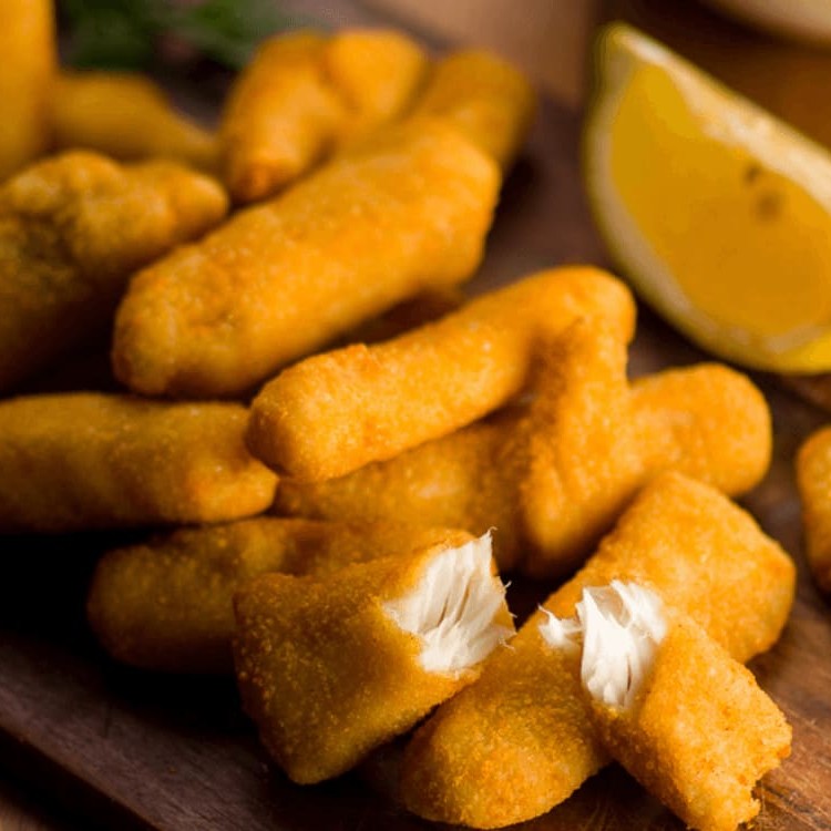 Tilápia temperafa e empanada finalizada com Cebolinha acompanha limão 35g