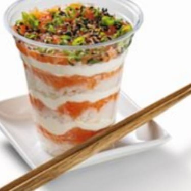 Arroz salmão batido com creme cheese finalizado com Cebolinha e gergelim