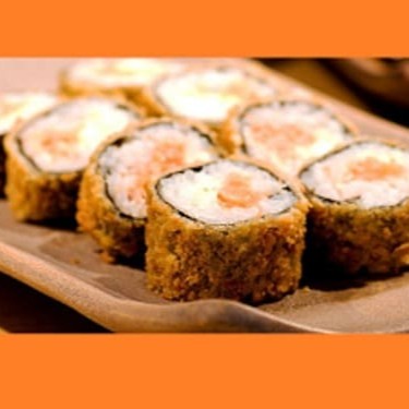 Nori Arroz Creme cheese E Salmão O salmão desse temaki e frito E o temaki e todo empanado