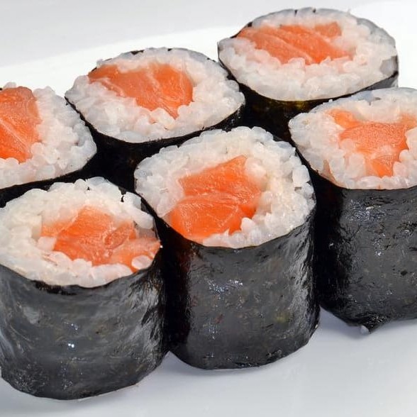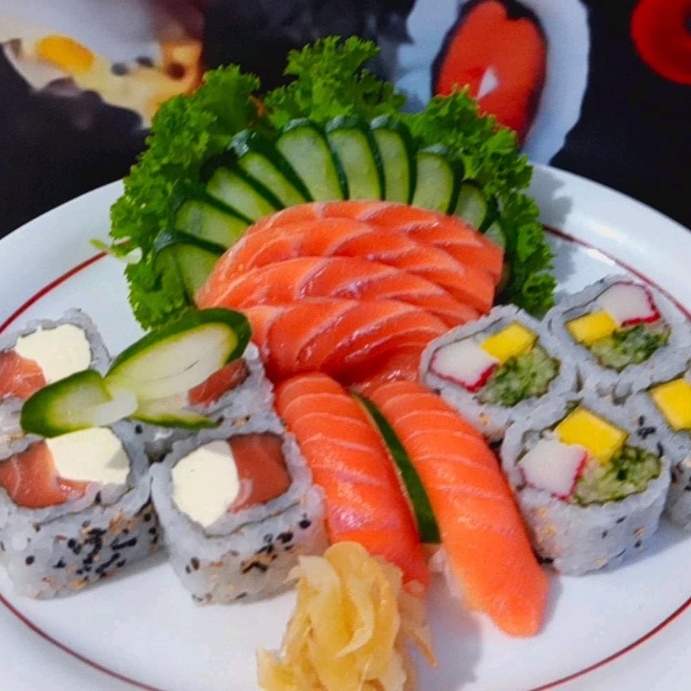 4 sashimi de salmão 4 uramaki Filadélfia 4 uramaki Califórnia 2 Niguiri de salmão