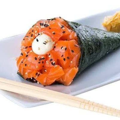 Nossa temaki é composto Arroz creme cheese Salmão grelhado E todo empanado