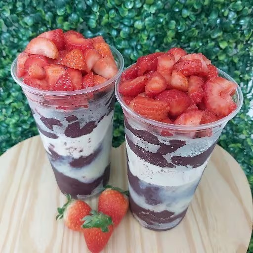 Leve 2 deliciosos copos de 300ml com leite condensado, leite em pó, mousse de morango e um toque de Confete.