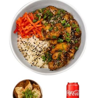 Donburi Frango Teriyaki + Guiozá + Coca-cola