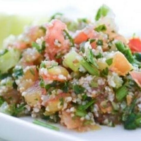 Alface, salsinha, cebola, tomate, trigo de quibe.