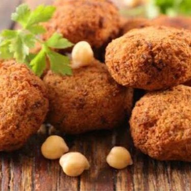 Porção de 6 bolinhos de grão de bico, acompanha molho de tahine.