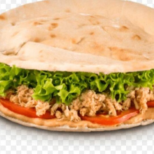 Pão árabe, maionese, alface, tomate em rodelas, picles, frango, Catupiry derretido, cebola frita, queijo, presunto e ovo.