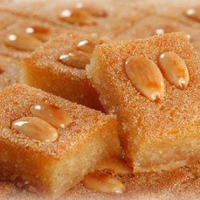 Doce de semolina com calda aguà de rosa e amêndoa