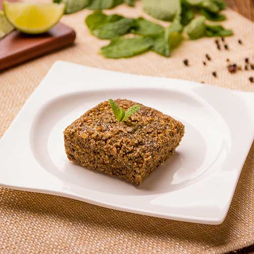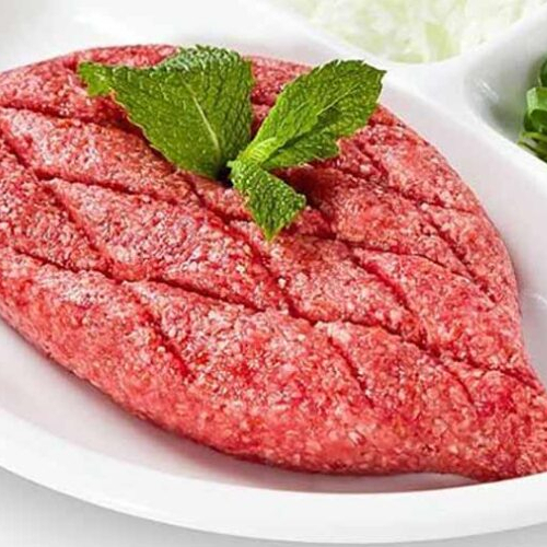 Delicioso kibe cru com tempero especial, com salada e pão árabe