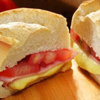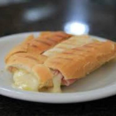 Pão francês, duas fatias de queijo mussarela, uma fatia de presunto, duas rodelas de tomate e oregano.