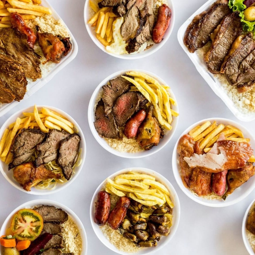 Arroz soltinho, Feijão (a sua escolha), Acompanhamento do dia, Suplementos do dia e Uma Carnes Suculenta Para Saborear.