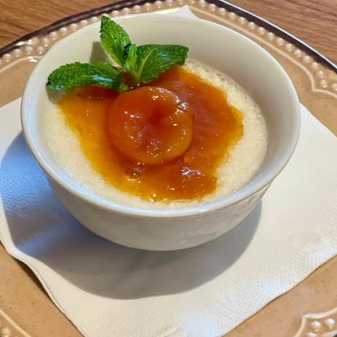 Manjar turco com calda de damasco.