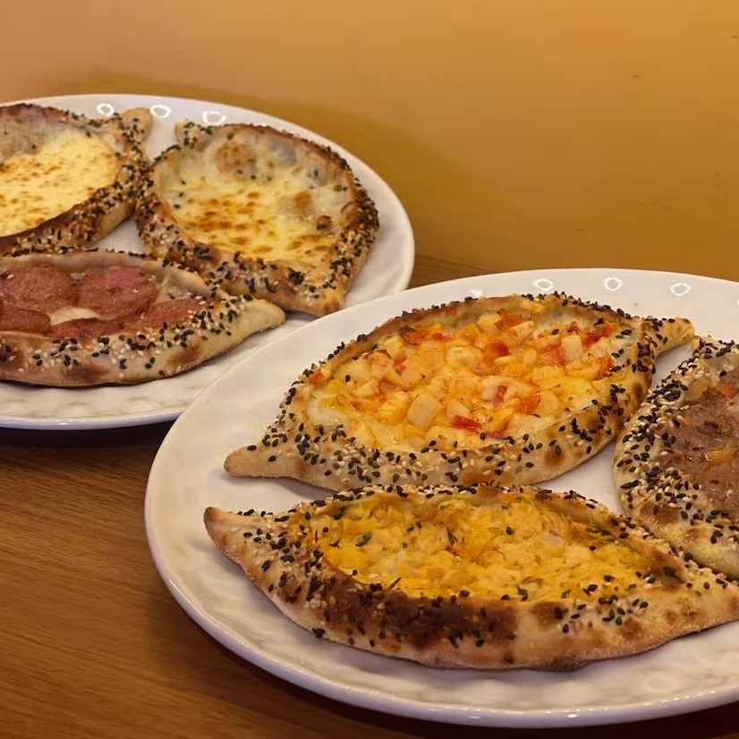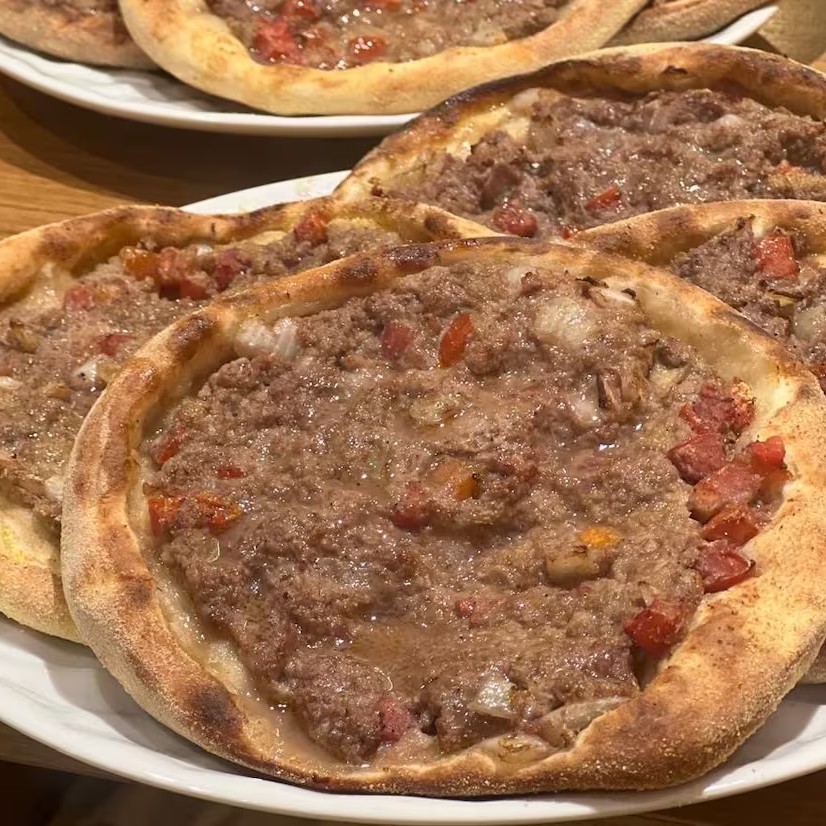 Mini pizza árabe (6 unidades). Escolha o sabor: carne, frango, palmito, escarola, calabresa e zaatar.