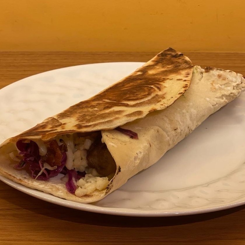 Pão sírio, queijo, tomate, alface e hommus.