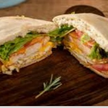 Pão fino recheado com tomate, cebola, salsinha, queijo, tiras de frango e pasta de alho.
