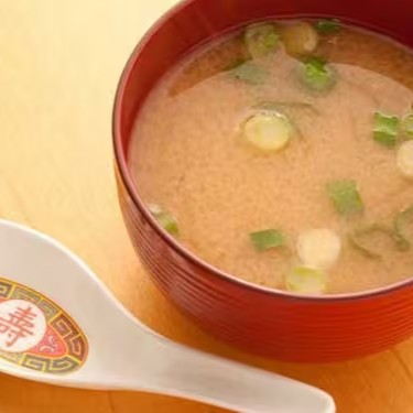 Porção individual de sopa a base de missô com cenoura e cebolinha