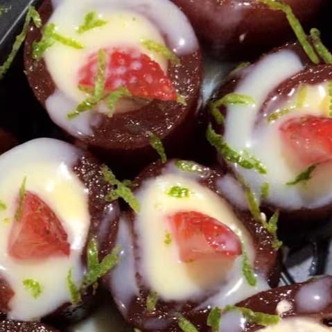 Cone de arroz, salmão, cream cheese, coberto com uma deliciosa geléia de pimenta agridoce.