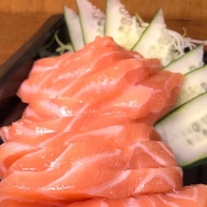 Fatias frescas de salmão caprichadas pra você.