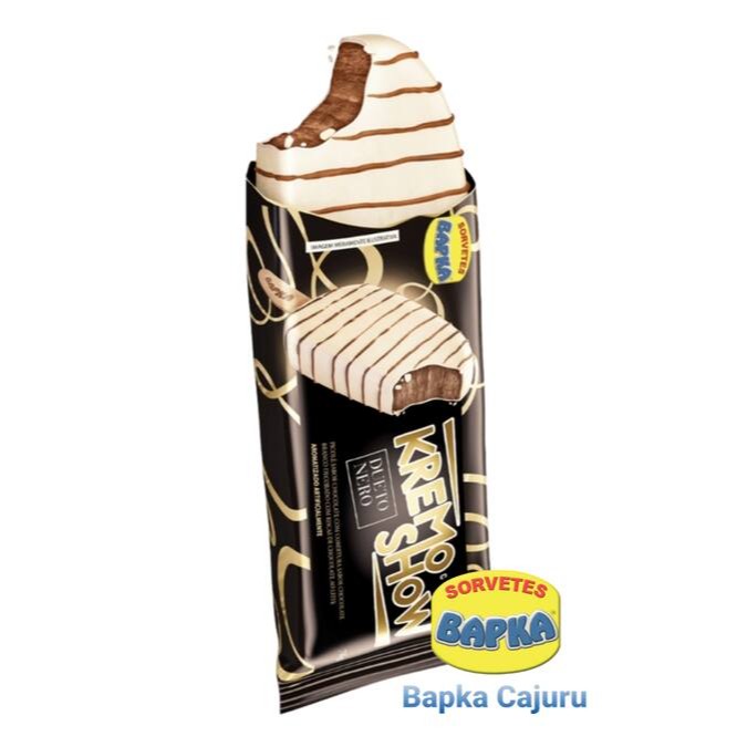 Ingredientes: Água, cobertura de chocolate ao leite (açúcar, leite em pó integral, manteiga de cacau, gordura de palmister. Emulsionantes: lecitina de soja (Ins 322) e polirrinoleato de poliglicerol e castanhas de caju. Aroma idêntico ao natural), açúcar, leite em pó integral, soro de leite em pó, xarope de glicose, gordura vegetal e riscos de cobertura chocolate branco (açúcar, leite em pó integral, soro de leite desmineralizado, gordura de manteiga desidratada, gordura de palmiste e flocos de arroz. Emulsionantes: lecitina de soja (Ins 322) e polirrinoleato de poliglicerol e aroma idêntico ao natural). Contém: Aroma artificial de chocolate branco, Espessantes: carboximetilcelulose sódica (Ins 466), carragena (Ins 407) e goma guar (Ins 412). Estabilizante: mono e diglicerídeos de ácidos graxos comestíveis (Ins 471).