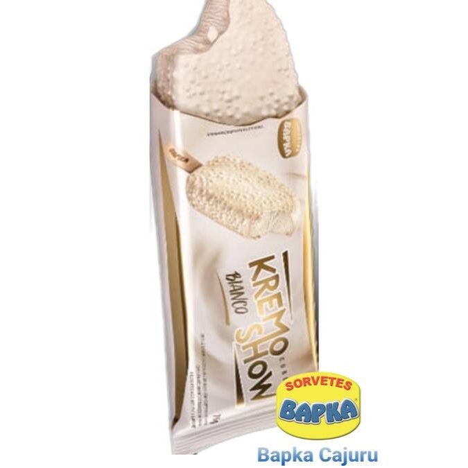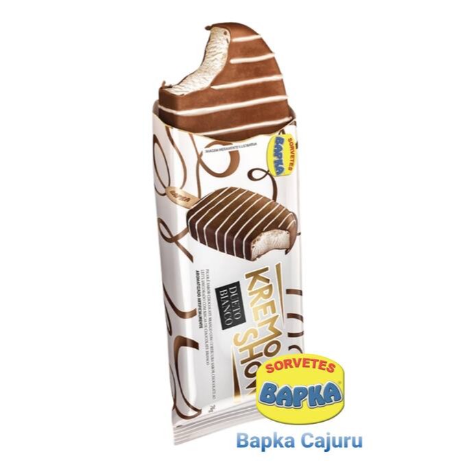 Chocolate branco envolto em uma camada de chocolate branco crocante. Sorvete cremoso, de qualidade premium Bapka.