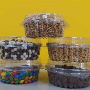 Um pote de 2 Litros (985g) + Uma casquinha biscoito crocante 20 unidades + Uma cobertura 300 g