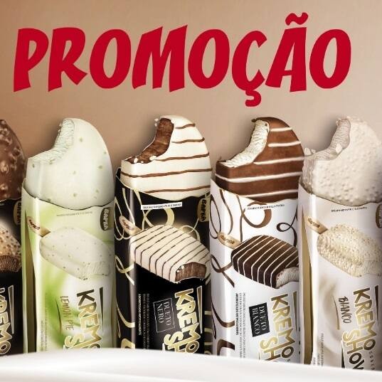 Sabor chocolate branco com cobertura de chocolate ao leite.