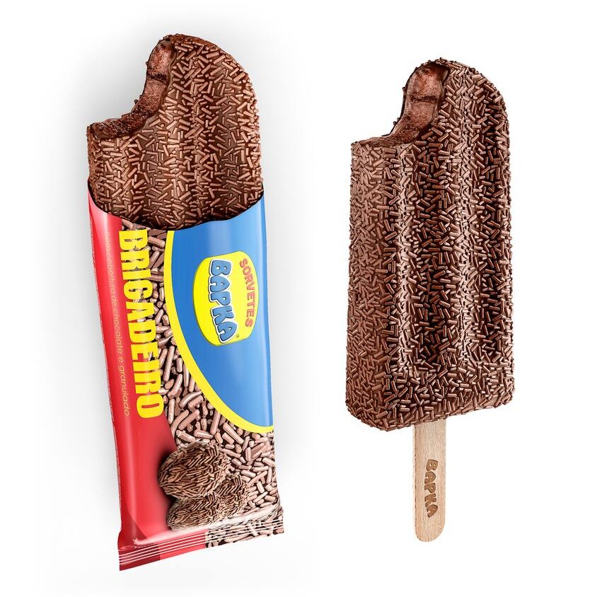 Sabor chocolate meio amargo com cobertura de chocolate ao leite e castanha de caju moído.