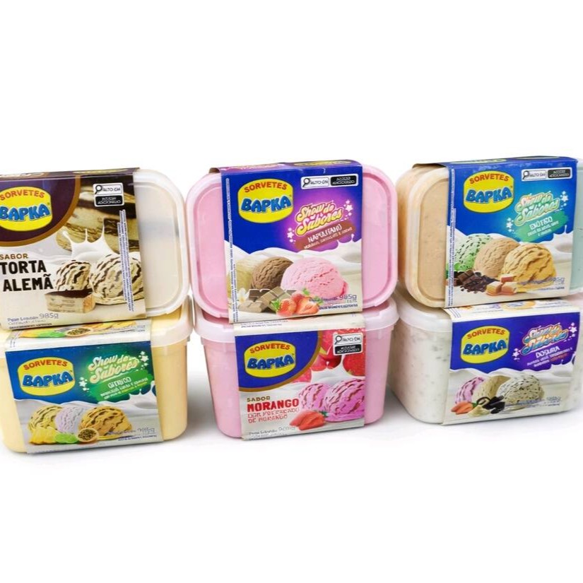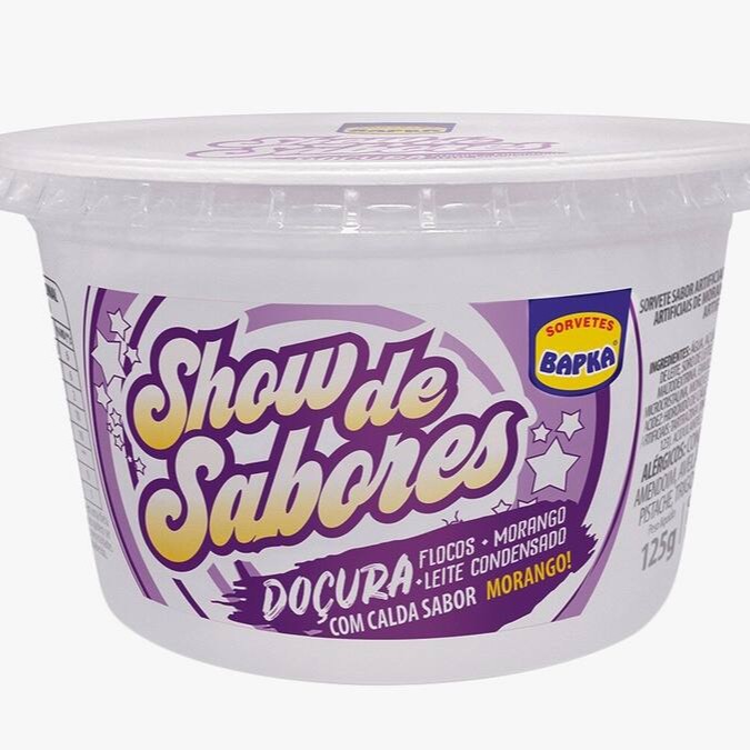 De acordo com a disponibilidade da loja - Sabores morango, limao, abacaxi, uva, tuti-fruti, chocolate, leite condensado, banana, milho verde, coco, morango cremoso, ituzinho.