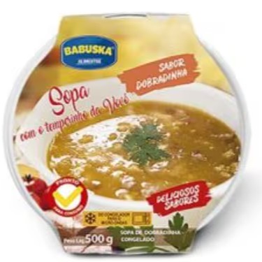 Ingredientes: Água, Abobrinha, Batata Inglesa, Batata Salsa, Brócolis, Cenoura, Chuchu, Macarrão, Tomate, Cebola, Milho em Conserva, Repolho, Sal, Alho e Óleo de Soja.