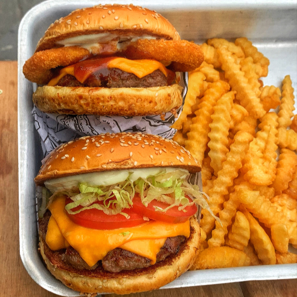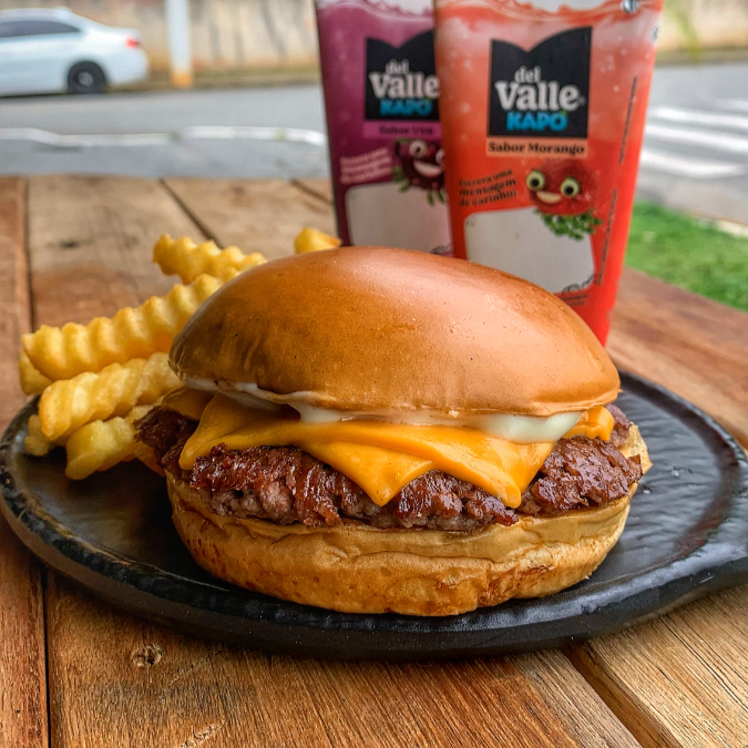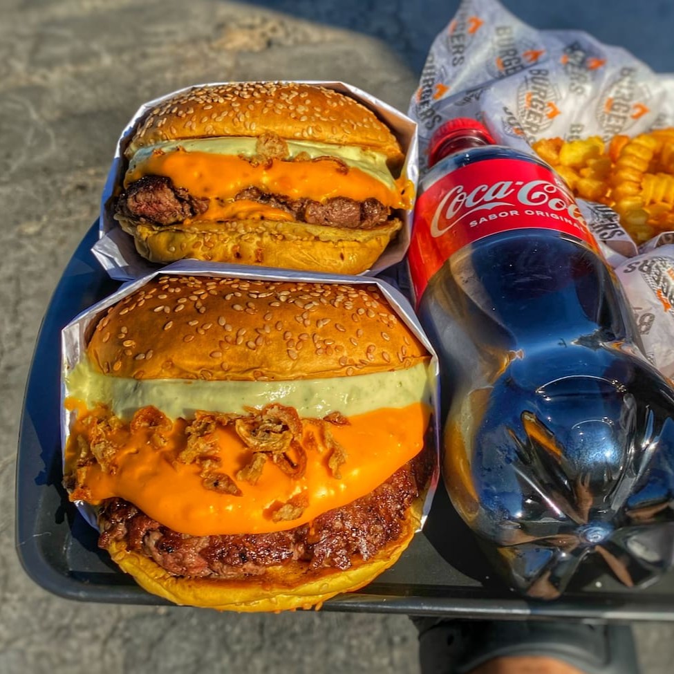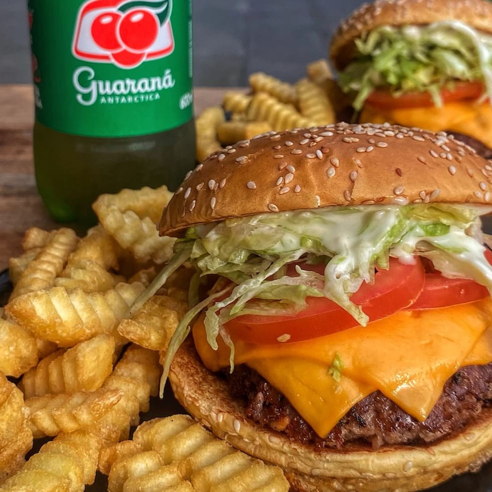 Os lanches acompanham 2x batatas 150g (cada), 1x refri 600ml. Pão de Brioche Selado na Manteiga, delicioso Hamburguer de 120g, Cheddar cremoso, cebola Crispy e maionese da casa.