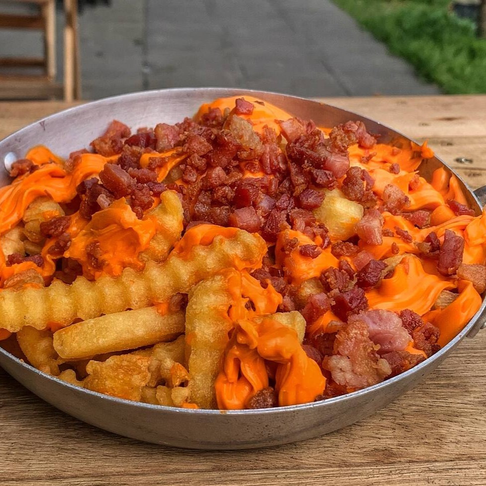 Porção com 350g de Batata crocante + Cheddar cremoso + Bacon douradinho e crocante.