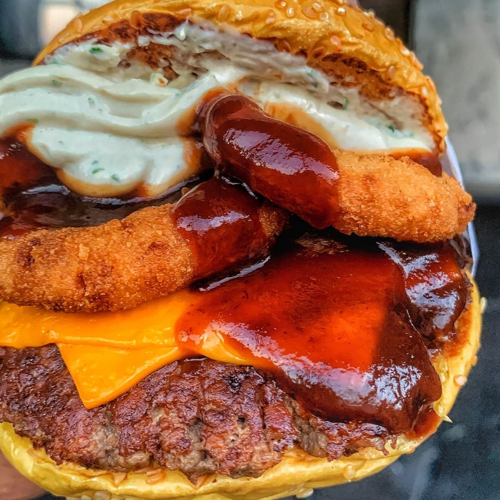 Hamburguer de 80g (smash) + fatias de Cheddar Cremoso + anéis de Cebola empanado + Molho Barbecue + Maionese nobre do Barão, tudo em um pãozinho de brioche selado na chapa. o Classico que ganhou seu espaço na linha Smashh :)