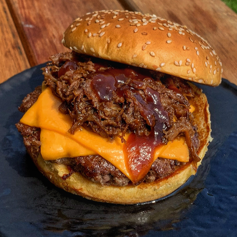Hambúrguer Suculento de 130g + Fatias de Cheddar Derretendo + 100g Da Melhor Costela Desfiada que você já comeu + aquele toque de barbecue pra Fechar no modelo (costela barbecue) vai virar seu favorito