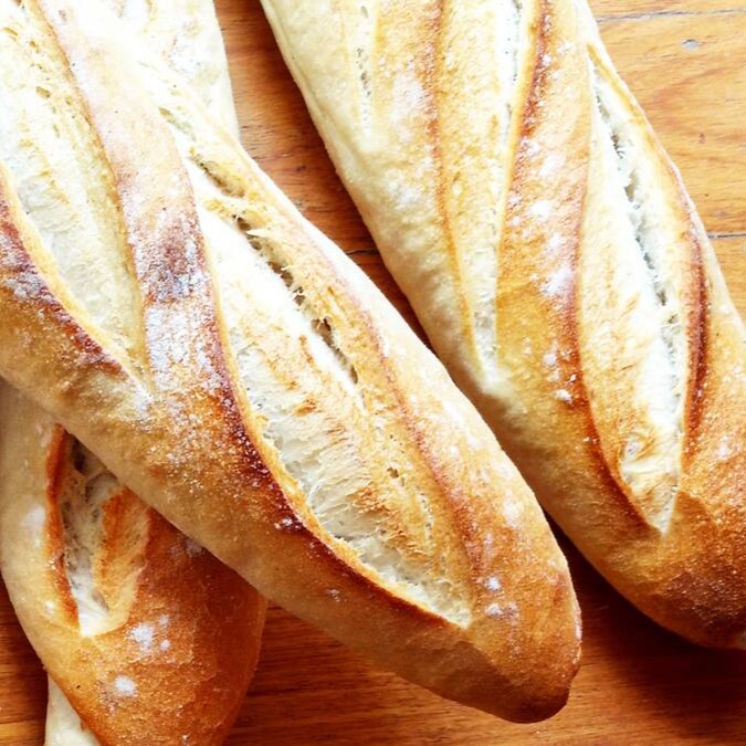 O verdadeiro Pão Francês, formulado a partir de farinha de trigo, água, fermento biológico e sal. Processo clássico com pâte fermentée e assado em forno de lastro. Um clássico do Dia a Dia!