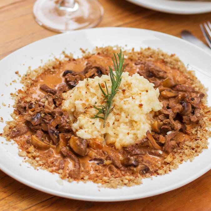 Strogonoff Tutto Riso - Clássico Strogonoff Com Risoto De Queijo Brie