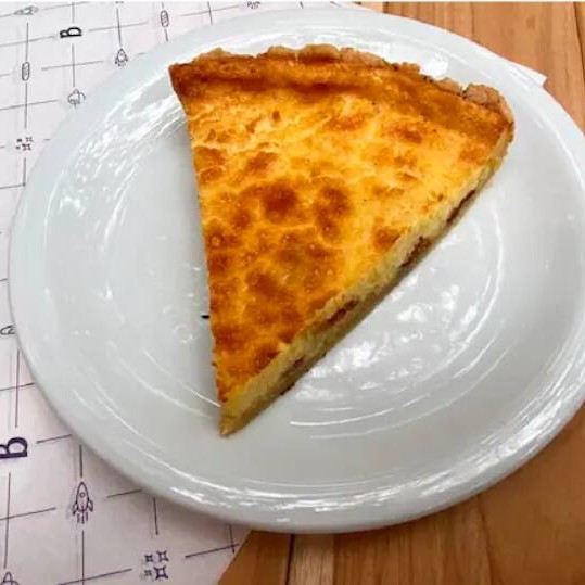 Receita tradicional francesa de Quiche com Bacon (fatia). Leve e super saborosa.