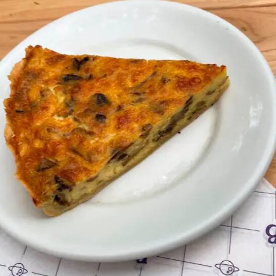 Receita tradicional francesa de Quiche com Cogumelo Paris (fatia). Leve e super saborosa.