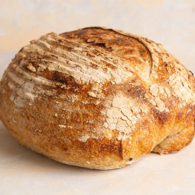 Pão de fermentação natural com 450 gramas. Utiliza trigo argentino, italiano e 10% de trigo integral grosso.