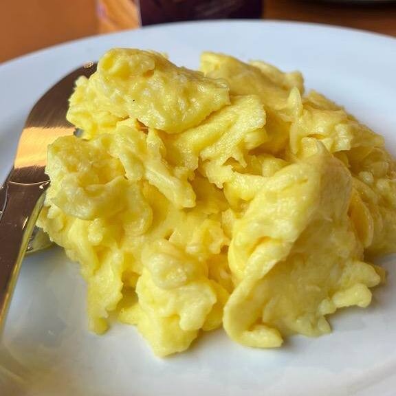 Ovos mexidos perfeitos, grumados, com umidade e ar entre os pedaços; um dos carros-chefes da casa.