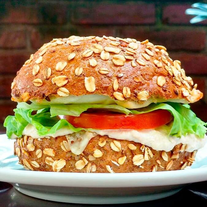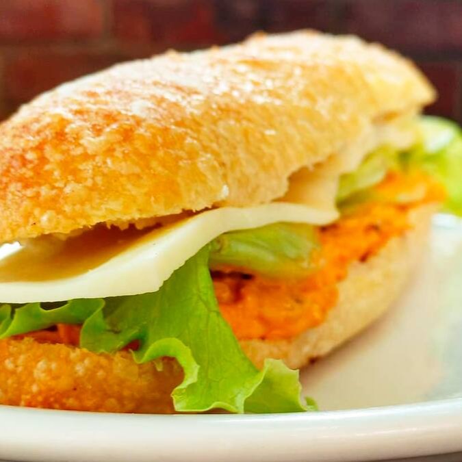 O "Kiko" é um sanduíche vegetariano preparado no pão preto, recheado com queijo mozzarella gratinado, tomate e oliva.