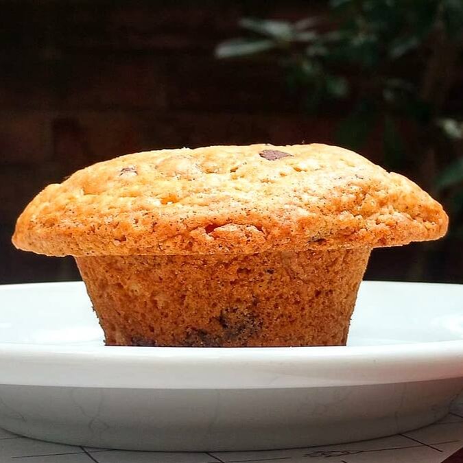 Homemade muffin style: com gotas de chocolate meio amargo e um toque de baunilha