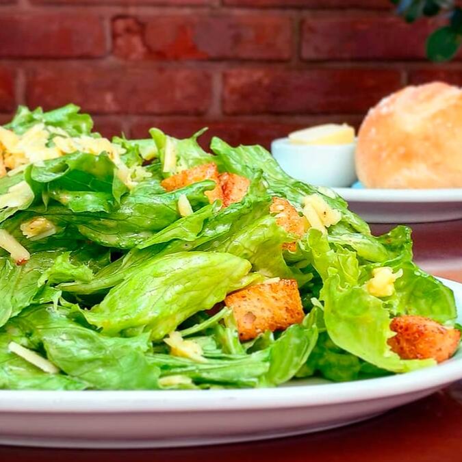 A nossa Salada de Alface Americana é completa e vem acompanhada de Croutons de Levain e Queijo Parmesão.
