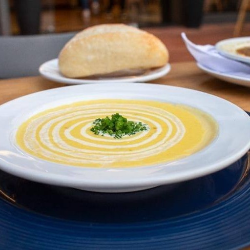 O Creme de Milho possui textura lisa e uniforme, com milho salteado na manteiga para proporcionar uma explosão de sabor a cada colherada e é acompanhado por nosso pão francês.