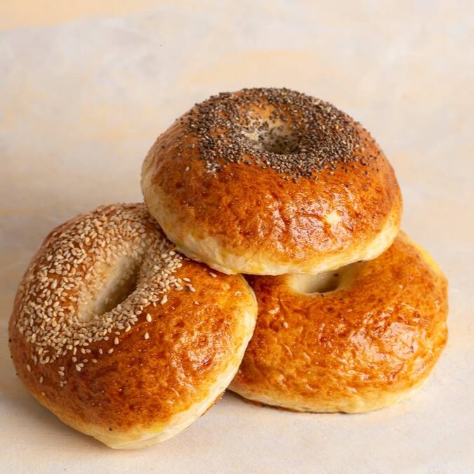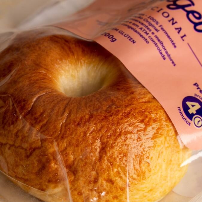 Pão de origem judaica em formato de anel, possui película fina e elástica devido a escalda em água quente antes do cozimento. Por dentro o miolo neutro e macio fica perfeito para compor o café da manhã e base de sanduíches variados.