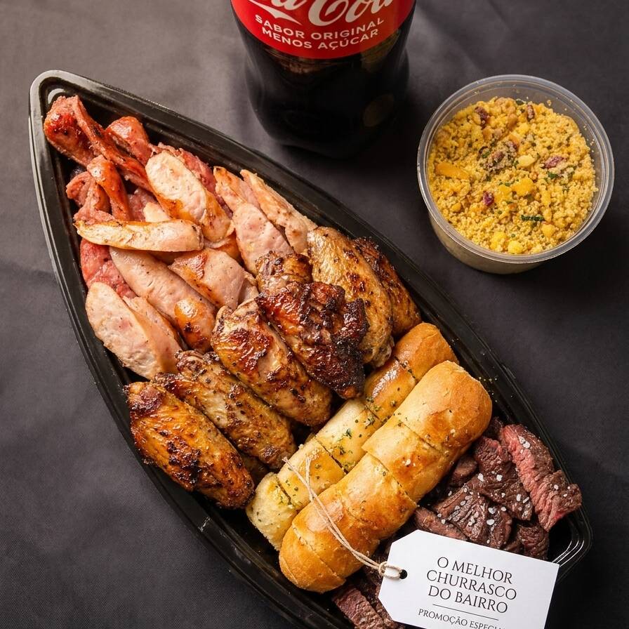 Barca Completa Premium – Serve com Muito fartura! Curta um verdadeiro banquete com cortes nobres, grelhados na brasa e acompanhamentos artesanais. Ideal para dividir, perfeita para impressionar. Satisfação garantida ou seu dinheiro de volta! Peça agora no ifood e experimente o churrasco mais desejado de Curitiba. Inclui: •300g Fraldinha suculenta •300g Frango bem temperado •300g Linguiça + Coca Cola 600ML (BRINDE)