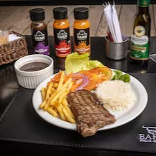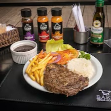 Corte de ancho, macio e suculento, acompanhado de arroz, feijão, batata frita e salada.