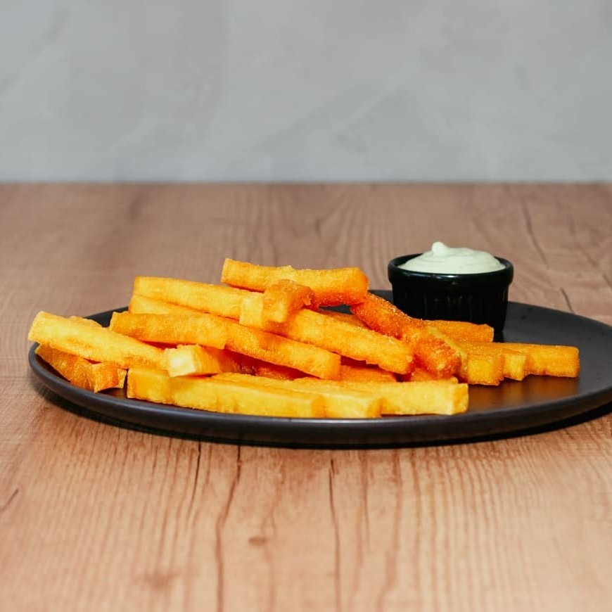 Deliciosa porção de polenta, acompanhada de maionese Barolla, perfeita para compartilhar e saborear em momentos descontraídos. 400 Gramas