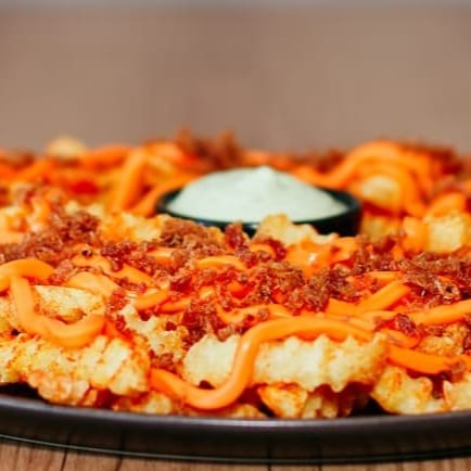 Porção de batatinha frita crocante com bacon, Tempero Barolla e queijo cheddar. Acompanha maionese Barolla, uma explosão de sabores. 400 Gramas