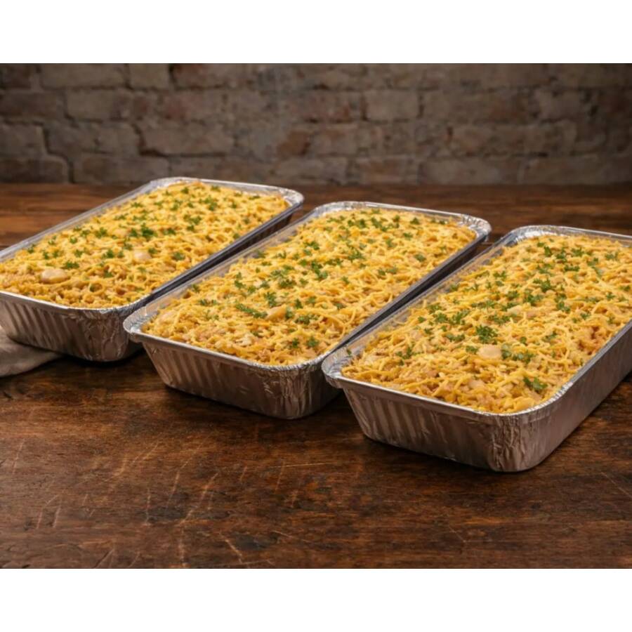 3 deliciosas batatas recheadas com strogonoff de frango super cremoso e saboroso. Aproximadamente 1200g, serve até 3 pessoas.